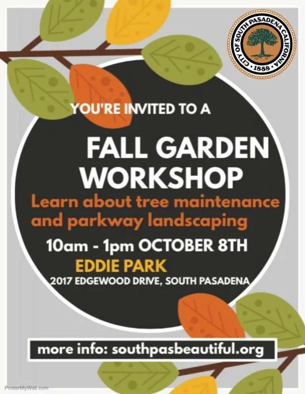 Saturday, Oct. 8, 2016 Eddie Park, 2017 Edgewood Dr., South Pasadena 10a.m. - 1 p.m.